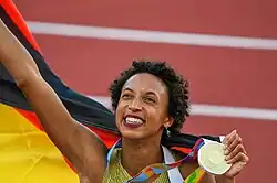 ![]() Malaika Mihambo shortly after the final. | ||||||||||