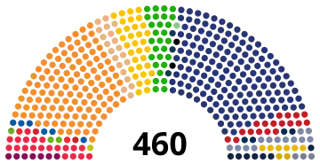 The process of election for the Sejm is through party-list proportional representation via the D'Hondt method in multi-seat constituencies,[20] with a 5% threshold for single party (KW) and citizen committees (KWW) and an 8% threshold for coalitions (KKW). National minority committees, such as the German minority, can apply to be exempt from the nationwide threshold, and in such case participate in the d'Hondt seat distribution within their constituency, in this specific case Opole, regardless of the national share of votes.[21] Contrary to popular belief, minority committees are not guaranteed seats in the parliament.[22]