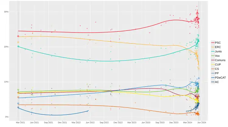 - ^ "La letra pequeña del CIS: El PSC gana en el laberinto catalán pero sigue en el aire la gobernabilidad". infoLibre (in Spanish). 27 April 2024.