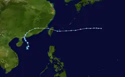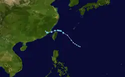 Meanwhile, on November 9, a tropical depression formed near Micronesia. The following day, the JMA began issuing warnings on the system. On November 11, the JTWC upgraded it into a tropical depression, designating it as 27W. By early morning of the next day, 27W intensified into a tropical storm, prompting the JMA to assign the name Usagi. This marks the first time in reliable meteorological records that four active systems were active simultaneously in the basin during November.[9] Around the same time, Usagi entered the PAR, receiving the local name Ofel from PAGASA. The storm continued to intensify and underwent a period of rapid intensification, reaching Category 4-equivalent super typhoon strength on November 14. At 13:30 PHT (05:30 UTC) of the same day, Usagi made landfall over Baggao, Cagayan. After landfall, Usagi began to weaken as its eye became obscured due to interaction with mountainous terrain. After crossing northern Luzon, it emerged into the Babuyan Channel, moving northwestward along the edge of a mid-level subtropical high. The system passed near the Babuyan Islands and northern Cagayan, prompting the JMA to downgrade it to a severe tropical storm. Satellite imagery showed a weakening low-level circulation with convection displaced northeast of a partially exposed center. As Usagi drifted southwest of Taiwan, it continued to weaken due to strong vertical wind shear, leading the JTWC to issue its final warning on November 16. The JMA monitored the system until it dissipated at 12:00 UTC on the same day.