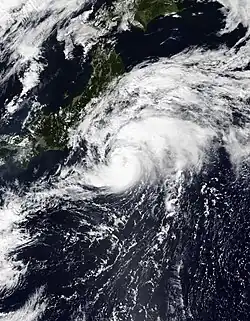 On the morning of August 12, Maria made landfall in Iwate Prefecture as a tropical storm, bringing strong winds and heavy rains in northern Japan. After moving inland, Maria weakened into a tropical depression. The storm entered the Sea of Japan, further weakening on the next day. The JTWC issued its final warning after Maria was last noted west-northwest of Misawa. JMA continued to track the depression before they issued their final warning at 04:15 UTC.