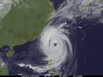 Shortly after reaching its peak intensity, Kong-rey started to slightly weaken while undergoing an eyewall replacement cycle as it tracked northwestward. The typhoon later made a historic landfall over Chenggong, Taitung in Taiwan, marking the first major typhoon to strike the island after mid-October and the most powerful since Typhoon Herb in 1996. Kong-rey then emerged through the Taiwan Strait with a weakened convective structure around the center. It continued to weaken and transitioned to an extratropical cyclone over Sasebo, Japan, prompting both agencies to issue their final advisories on November 1.