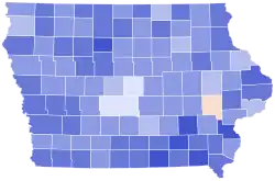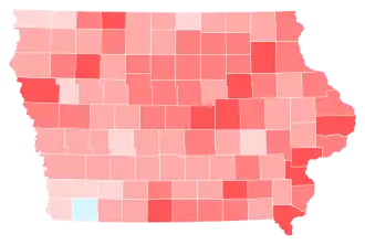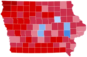 Iowa handed Republican Donald Trump a decisive victory, doing so by a margin of 219,741 votes. This election marks the third consecutive cycle in which Iowa voted for the Republican candidate in a presidential election. Notably, Trump improved his margins in 98 of 99 counties and gained significant support across all demographics, performing better in suburban, rural, and urban areas.[56] Trump became the first Republican to win Scott County since Ronald Reagan in 1984. This is the first election since 1968 that Iowa voted to the right of Alaska.