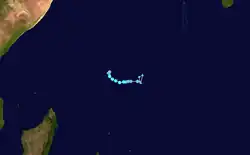 On 16 July, a tropical low moved into the basin from the Australian Region where it was classified as Zone of Disturbed Weather 01 by Météo-France. On the same day, the JTWC upgraded it to a Tropical Storm, assigning it the notation 01S.[1][2] The system moved west-southwestwards into an increasingly unfavourable environment, dissipating on 18 July.