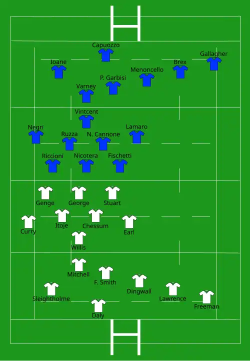 - ^ "Azzurri name team to take on France in Rome". Six Nations Rugby. 21 February 2025. Retrieved 24 February 2025.