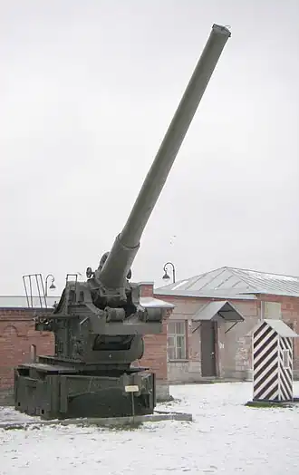 The 210 mm gun M1939 (Br-17) (Russian: 210-мм пушка образца 1939 года (Бр-17)) was a Czechoslovak heavy siege gun used by the Soviet Union during World War II. After the Germans occupied Czechoslovakia in March 1939 they took over the Škoda Works, which had been working on this design and a companion 305 mm howitzer. As a result of the Molotov–Ribbentrop Pact the Germans sold both designs to the Soviet Union. It is not entirely clear that Škoda actually built the weapons itself or merely supplied the blueprints.