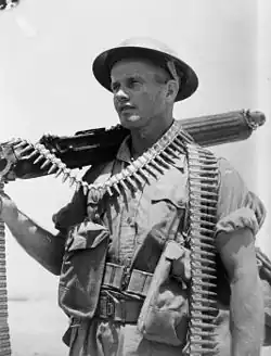 24th Battalion soldier Jim Dempsey with a Vickers machine gun at Helwan