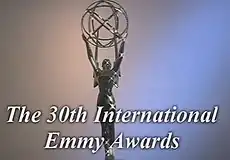 The nominees to the International Emmys, were announced by International Academy of Television Arts & Sciences (IATAS) on October 8, 2002, at a press conference at MIPCOM in Cannes. The International Academy announced the winners of the 30th International Emmy Awards in a ceremony gala at the Sheraton New York hosted by Donna Hanover. Joining her as presenters were Mia Farrow, Angela Lansbury, Joan Collins and Lauren Holly.[2]