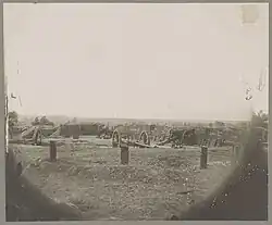 The 34th North Carolina was present at the battle of Bristoe Station, but it was not actively engaged. It fought at the battle of Mine Run, enduring the cold weather with great pain. The regiment spent the winter of 1863/64 at Orange Court House, where they received new recruits. They were mostly between 40 and 45 years of age, and not very able or willing soldiers.[12] Soldiers kept deserting, no doubt because of the lack of supplies.[13] Come spring, and the campaign season, the regiment fought at the battles of the Wilderness; Spotsylvania Court House, where its losses were few, fighting as they did behind breastworks; Hanover Junction, where it suffered heavy casualties, losing three color bearers. At the battle of Cold Harbor it was not actively engaged, but came under rapid Union fire for a long time. During the siege of Petersburg, the 34th North Carolina fought at the battle of Jerusalem Plank Road, later participating in the first assault wave at Ream's Station, being repulsed with heavy casualties.[14]