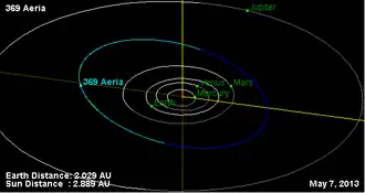 - ^ a b c d e f g h i j "JPL Small-Body Database Browser: 369 Aeria (1893 AE)" (2017-07-03 last obs.). Jet Propulsion Laboratory. Retrieved 24 October 2017.