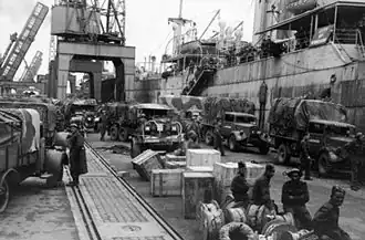 3 AA Bde was now cut off from the bulk of the BEF, which was preparing to evacuate from Dunkirk (Operation Dynamo).[37][38][39] Even after this ended on 3 June, there were still British forces in France north of the Seine, and 79th (HY) HAA Rgt maintained its defences at Le Havre covering the Seine ferries. As AADC, Lt-Col Raikes had a troop of 174 LAA Bty and 307 AA Coy, in addition to his own regiment and 4 LAA Bty: a total of 22 x 3.7-inch, 8 x Bofors, 4 x 2-pounders and 24 S/Ls. There were also some Barrage balloons and French AA guns. Nightly air attacks on the Le Havre harbour area began in earnest on 3/4 June, with the guns in action for long periods.[28][40]