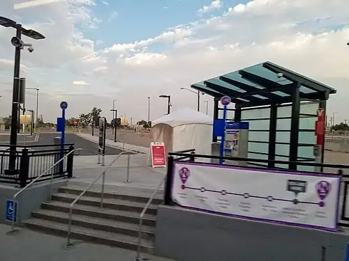 48th & Brighton / National Western Center station (sometimes stylized and abbrivated as 48th & Brighton•Nat'l Western Cntr) is a station on the N Line of the Denver RTD commuter rail system in Denver, Colorado. It is the first station northbound from Union Station and is located on the edge of the Elyria-Swansea neighborhood.[4][5] The station opened on September 21, 2020.[3]