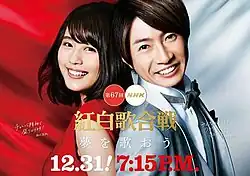 This year's theme is "Let's Sing a Dream" (夢を歌おう). It was revealed that the theme will remain unchanged through the 70th edition in 2019, in support of the upcoming 2020 Summer Olympics and 2020 Summer Paralympics.[1] On November 12, Kasumi Arimura and Aiba Masaki were announced as the captains of the Red and White teams, respectively. On November 24, the list of program artists were announced, as well as this year's mediator, Shinichi Takeda.[2]