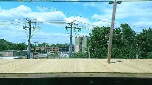 67th Street was a commuter rail station on the Metra Electric District in Chicago. The station was built on a solid-fill embankment with a pair of island platforms between the inner and outer tracks. Access was made via a pair of stairwells to street level situated underneath the 67th Street viaduct. The station was closed in 1984 due to low ridership.[2] The stairwells to track level were bricked off, however both platforms still exist.
