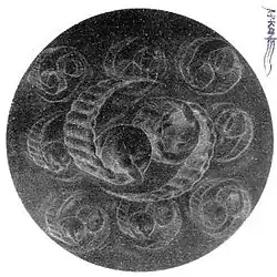 Simon Reynolds presumed the perceived references to oral sex in some of the band's lyrics continued to the album title, 69 (as in the sex position) and the "weird sea creatures in suggestive positions" on the album cover. Tambala denied any intention, saying the album cover shows "crustacean people from the planet Zarg... But they weren't having sex... They didn't have sex organs, for a start."[13] Ayuli said "it's an angle. To be honest, most of the song titles we don't think about. The title seems to connect at the time, and it's not until later that we think: 'oh dear, we mentioned sperm again'. And then it's too late, it's printed on the record.... But I like the idea of people inputting stuff into the music. I mean, there's only so many things that can happen, right, and if you leave enough room, then they all happen."[13] Geiger said that "the title's reference to the sexual position is obvious, but the figure symbolizes also opposed the connectedness, the circle organic ran from one to the other. The plate cover is emerging as also on white background a dark circle in the middle of which we can faintly make out the number 69, which is shaped like two dark, undulating spirals. Inner-case's intricate shading shows the blue background and more clearly six-figure as a pregnant woman and nine-figure as a man, both swimming, in harmonious movements."[19]