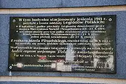 - No. 86: Imperial Russian Army military barracks, occupied in the autumn of 1914 by, among others, the II Battalion of the 1st Regiment of Polish Legions Infantry, during World War I by the Imperial German Army, in 1918 by soldiers of the 28th Infantry Regiment Łódź Children (later 28th Kaniowskie Rifle Regiment), from 1921 by soldiers of the 4th Heavy Artillery Regiment of the Polish Army;[147]