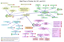 Also unconnected to the anthrax attacks was a large envelope received at American Media, Inc., in Boca Raton, Florida (which was among the victims of the attacks), in September 2001. It was addressed "Please forward to Jennifer Lopez c/o The Sun", containing a metal cigar tube with a cheap cigar inside, an empty can of chewing tobacco, a small detergent carton, pink powder, a Star of David pendant, and "a handwritten letter to Jennifer Lopez. The writer said how much he loved her and asked her to marry him."[33] Another letter, which mimicked the original anthrax letter to Senator Daschle, was mailed to Daschle from London in November 2001, at a time when Hatfill was in England, not far from London.[34][35][36] Shortly before the discovery of the anthrax letters, someone sent a letter to authorities stating, "Dr. Assaad is a potential biological terrorist."[37] No connection to the anthrax letters was ever found.[38]