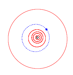 ![]() Orbit of Tyrannosaurus (blue), with the inner planets and Jupiter (outermost) | |