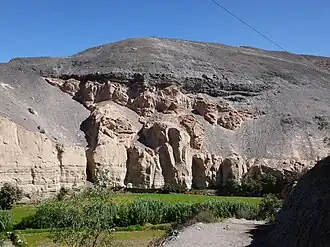 Añaswayq'u (Quechua añas skunk, wayq'u valley,[1] "skunk valley", hispanicized spelling Añashuayco) is a valley in the Arequipa Region in Peru, northwest of the city of Arequipa. It lies in the districts Cerro Colorado and Uchumayo of the Arequipa Province, northeast of Uchumayo.[2][3][4] The valley contains volcanic stone, white ignimbrite (sillar), which has been used for religious and civil buildings of Arequipa since colonial times.[2]