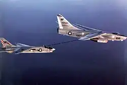 By the end of the 1950s, it was becoming clear that the nuclear mission of the Skywarrior would be passed onto ballistic missiles; however, its high weight clearance and size meant that the aircraft would be useful in various other capacities.[13] Accordingly, large numbers of Skywarriors were retrofitted as aerial refuelling tankers or as electronic warfare platforms; notably, the EKA-3B model could readily swing between performing strike, refuelling, and electronic warfare duties as required. Numerous other models of the type were developed, leading to the type being used for aerial reconnaissance and as a trainer aircraft as well.[14] Production of the type ceased in 1961.