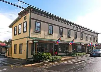 The A. Nanbu Hotel-Holy's Bakery building is a historic building complex located in Kapaau on the island of Hawaii. The A. Nanbu Hotel, the original section of the building, was constructed circa 1900 and features a simplified Italianate design. Japanese immigrant Ayataro Nanbu purchased the hotel in 1917 and renamed it after himself. In addition to housing out-of-town visitors, the hotel played an important social function for the residents of Kapaau, as it hosted community meetings and gatherings and housed a local restaurant, bar, bakery, and dry goods store. Holy's Bakery was added to the back of the hotel in 1932 by Yoshio Hori, Nanbu's nephew; its name came from an error made by its signmaker, who was supposed to name the bakery after Hori. The hotel closed in the 1960s after Nanbu's death, while the bakery remains in operation and is still popular on the island.[2]