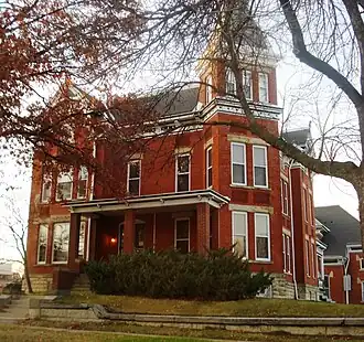 The A. T. Averill House is a historic building located in Cedar Rapids, Iowa, United States. Local architects Sidney Smith and William A. Fulkerson designed this 212-story, brick Late Victorian home. It was completed in 1886 for farm implement dealer Arthur Tappan Averill. This is a more restrained version of the High Victorian style.[2] The house features a truncated hip roof, a 212-story polygonal bay, and a rectangular tower set on the diagonal. The carriage house/barn behind the house is of a similar design, but older.[2] The house was listed on the National Register of Historic Places in 1978.[1]