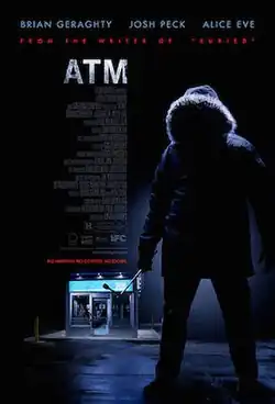 ATM is a 2012 American horror thriller film directed by David Brooks. The film stars Brian Geraghty, Alice Eve, and Josh Peck. Its plot centers on three people who become trapped in an ATM booth by a psychopathic hooded figure.