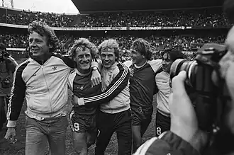 The 1980–81 season was historic for AZ as they secured their first-ever Eredivisie title, won the KNVB Cup, and reached the UEFA Cup final.[7] Despite their remarkable success in the domestic league, their UEFA Cup journey ended with a narrow 5–4 aggregate loss to Ipswich Town in the final. Notably, this defeat came just three days after celebrating their inaugural league championship.[7][8]