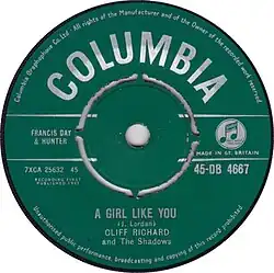 "A Girl Like You" is a song written by Jerry Lordan and recorded by Cliff Richard and the Shadows in June 1961. It peaked at number 3 on the UK Singles Chart.[1]