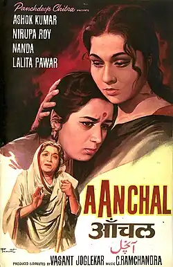 Aanchal is a 1960 Hindi drama movie directed by Vasant Joglekar.[2] The film stars Ashok Kumar, Nirupa Roy, Nanda in lead roles.[3] The music was composed by C. Ramchandra.[4]