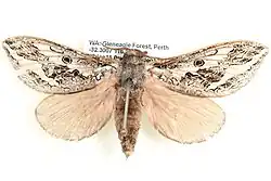 2. ^ Norman Tindale (1932). "Revision of the Australian ghost moths (Lepidoptera Homoneura, Family Hepialidae). Part I". Records of the South Australian Museum. 4: 497-536 [514]. ISSN 0376-2750. Wikidata Q130613873.