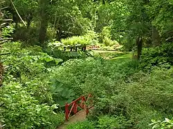 The garden originates in 1765.[3] In the late eighteenth century, the Fox-Strangeways family (the Earls of Ilchester) built a new house on the location; when it was burnt down in 1913, they returned to their family seat at Melbury House, but the walled garden was maintained—it remains in the ownership of the family.[4] Since then, particularly after the contributions of the 4th Earl of Ilchester,[4] the gardens have developed into an 8 hectares (20 acres) site with exotic plants, many of which were newly discovered species when they were first introduced. There are formal and informal gardens, with woodland walks and walled gardens; in addition, the gardens also contain certain "zones" that exhibit plants from different geographical areas.[3]