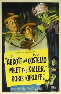 Abbott and Costello Meet the Killer, Boris Karloff[a] is a 1949 horror comedy film directed by Charles Barton and starring Abbott and Costello and Boris Karloff.