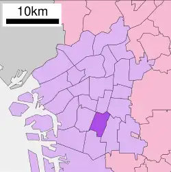 Abeno-ku (阿倍野区) is one of 24 wards of Osaka, Japan. It is located in southern Osaka city and has a population of over 107,000. In the northern part of Abeno, Abenobashi, there is the Kintetsu Minami Osaka Line which terminates at Abenobashi Station, the Midōsuji Line and Tanimachi Line of the Osaka Municipal Subway at Tennoji Station, and the Hankai Tramway's Uemachi Line which terminates at Tennoji-eki-mae Station. The Abenobashi area of Abeno is a commercial area where department stores and movie theatres are located. Abeno is a home for Sharp Corporation (Nagaike-cho).