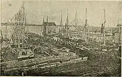 View of the City of New Bedford, Massachusetts, 1876. The wharfs of New Bedford were the disembarking point for fugitive slaves, who traveled by ships or schooners in their quest for freedom.