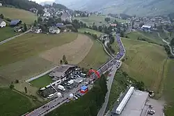 The start of the annual single-day seven mountain passes crossing Maratona dles Dolomites bicycle race is every year in La Ila.