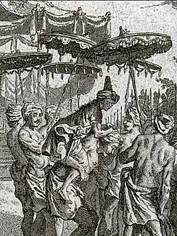 ![]() The circumcision ceremony of Abu al-Mafakhir Mahmud Abdulkadir in 1605 according to 18th century French graphic works | |