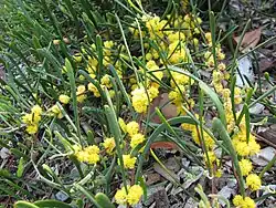 Acacia farinosa, commonly known as mealy wattle, is a shrub that is endemic to Australia.[2] It grows to between 1 and 2 metres high and has ascending phyllodes.[2] The yellow globular flower heads generally appear between August and October in its native range.[3] These are followed by curled and twisted pods which are up to 6 cm long and 2–3 mm wide.[2]