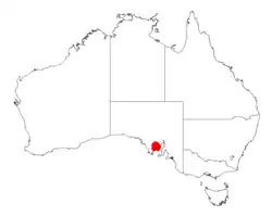 The shrub has a limited distribution in the north eastern part of the Eyre Peninsula of South Australia from around Kimba and Cowell where it is usually situated on small quartzite hills often combined with limestone or ironstone bedrock and growing in gravelly loams and sandy soils that are well drained.[1]