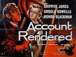 Account Rendered is a 1957 British second feature ('B')[1] crime film directed by Peter Graham Scott and starring Griffith Jones, Ursula Howells and Honor Blackman.[2] It was written by Barbara S. Harper based on Pamela Barrington's 1953 novel of the same name. It was released by the Rank Organisation.