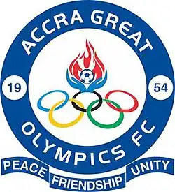 Accra Great Olympics is a Ghanaian professional football club based in Accra, Greater Accra. The club is currently competing in the Ghana Premier League.[1] It has won the Ghana Premier League twice, in 1970, 1974 and the Ghana FA Cup thrice, in 1975, 1983 and 1995.[2] Since its inception the club has forged a fierce rivalry between their neighbours Accra Hearts of Oak which has culminated into interesting game weeks over the years when the two face each other.[3][4][5][6]