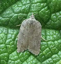 The wingspan is 18–22 mm.[2] The forewings are light greyish-ochreous, obscurely strigulated with grey base, central fascia, and costal patch indistinctly darker, fascia darkest towards costa. The hindwings are pale grey.[3] [4]