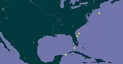 This marine species occurs in the Western Atlantic Ocean off Georgia, USA; in the Caribbean Sea off Mexico and Saint Lucia.