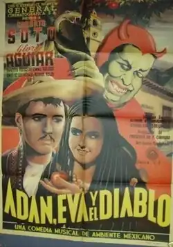 Adam, Eve and the Devil (Spanish: Adán, Eva y el diablo) is a 1945 Mexican comedy film directed by Alfredo B. Crevenna and starring Roberto Soto, Gloria Aguiar and Emma Roldán.[1][2] The film is based on the play The Broken Jug by Heinrich von Kleist.[3] It was shot at the Azteca Studios in Mexico City. The film's sets were designed by the art director Ramón Rodríguez Granada who was nominated for an Ariel Award his work.