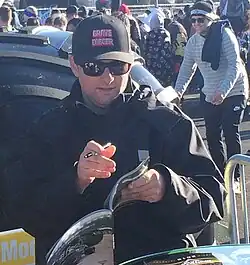 Adam Anderson (born December 5, 1985) is an American professional monster truck driver. He currently drives Grave Digger on the Monster Jam circuit. Adam is the son of Grave Digger creator Dennis Anderson and the older brother of fellow drivers Ryan, Krysten and Weston Anderson. He is a 5-time Monster Jam World Champion.[1] Adam currently resides in his hometown of Poplar Branch, North Carolina.