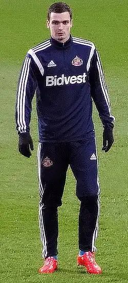 On 24 August 2012, his hometown team Sunderland signed Johnson on a four-year contract for £10 million.[51] Sunderland manager Martin O'Neill said "Adding quality players to the squad has been our main aim this summer and Adam certainly fits that bill. He has terrific ability, great delivery and I'm sure he is a player who will excite the fans. I couldn't be more delighted to have him at the club."[52] On 28 August, Johnson made his first appearance for Sunderland in a 2–0 win over League Two team Morecambe in the League Cup second round, assisting both goals at the Stadium of Light.[53] He scored his first goal for the club on 10 November, opening the scoring in a 1–2 defeat away to Everton.[54] He scored the only goal of a win over former club Manchester City at home on 26 December. In April 2013, against Sunderland's fierce rivals Newcastle at St James' Park, Johnson's picked up the ball on Sunderland's right and cut inside before sending a curling effort past Newcastle goalkeeper Rob Elliot with his left foot to score.[55]