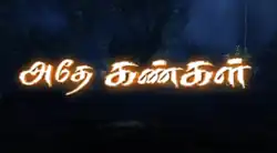 Adhe Kangal is a 2014 Tamil-language horror soap opera aired on Jaya TV from 17 February 2014 to 26 September 2014 on Monday and Friday at 10:00PM (IST) for 156 episodes.