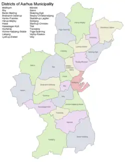 3. ^ a b "Distriktsinformation" (in Danish). Aarhus Kommune. Archived from the original on 24 November 2017. Retrieved 3 August 2015.