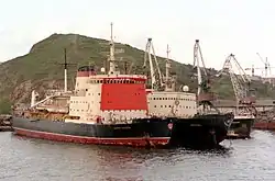 Admiral Makarov (Адмирал Макаров) is a Russian icebreaker operated by the Far East Shipping Company (FESCO).[2] Completed in 1975, she is FESCO's oldest icebreaker. Admiral Makarov and her sister ship Krasin (1976), are the largest of the four icebreakers in FESCO's fleet. She is named after the Imperial Russian Navy Admiral Stepan Makarov and was one of two icebreakers involved in Operation Breakthrough, an international effort to free three gray whales from pack ice in the Beaufort Sea near Point Barrow in the U.S. state of Alaska in 1988.