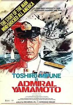 Admiral Yamamoto (Japanese: 連合艦隊司令長官 山本五十六, Hepburn: Rengō Kantai Shirei Chōkan Yamamoto Isoroku; lit.'Isoroku Yamamoto: Commander-in-Chief of the Combined Fleet') ia a 1968 Japanese epic war film directed by Seiji Maruyama, with special effects by Eiji Tsuburaya. Produced and distributed by Toho, it is the second film in 8.15 series, after Japan's Longest Day (1967), with Battle of the Japan Sea following in 1969, The Militarists following in 1970, and Battle of Okinawa following in 1971.[4] The film stars Toshiro Mifune as Admiral Isoroku Yamamoto, the commander-in-chief of the Combined Fleet during World War II.